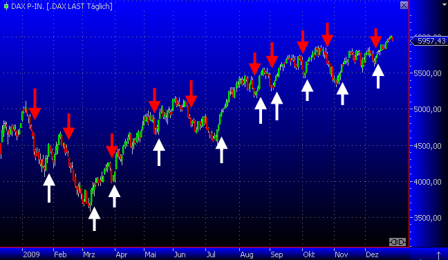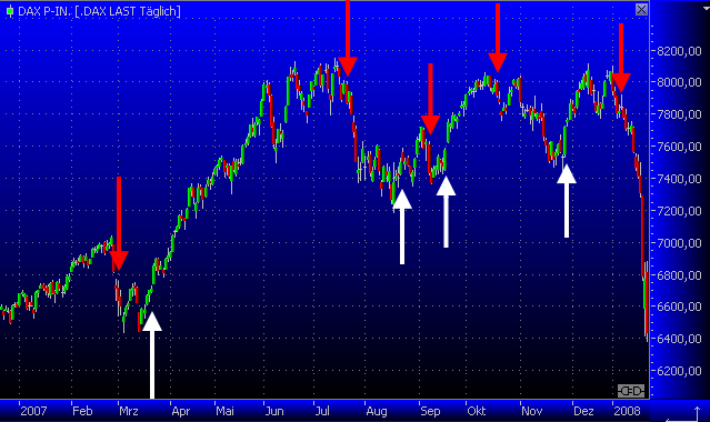 Alle Signale die das Handelssystem 2007 bis 2009 geliefert hat.